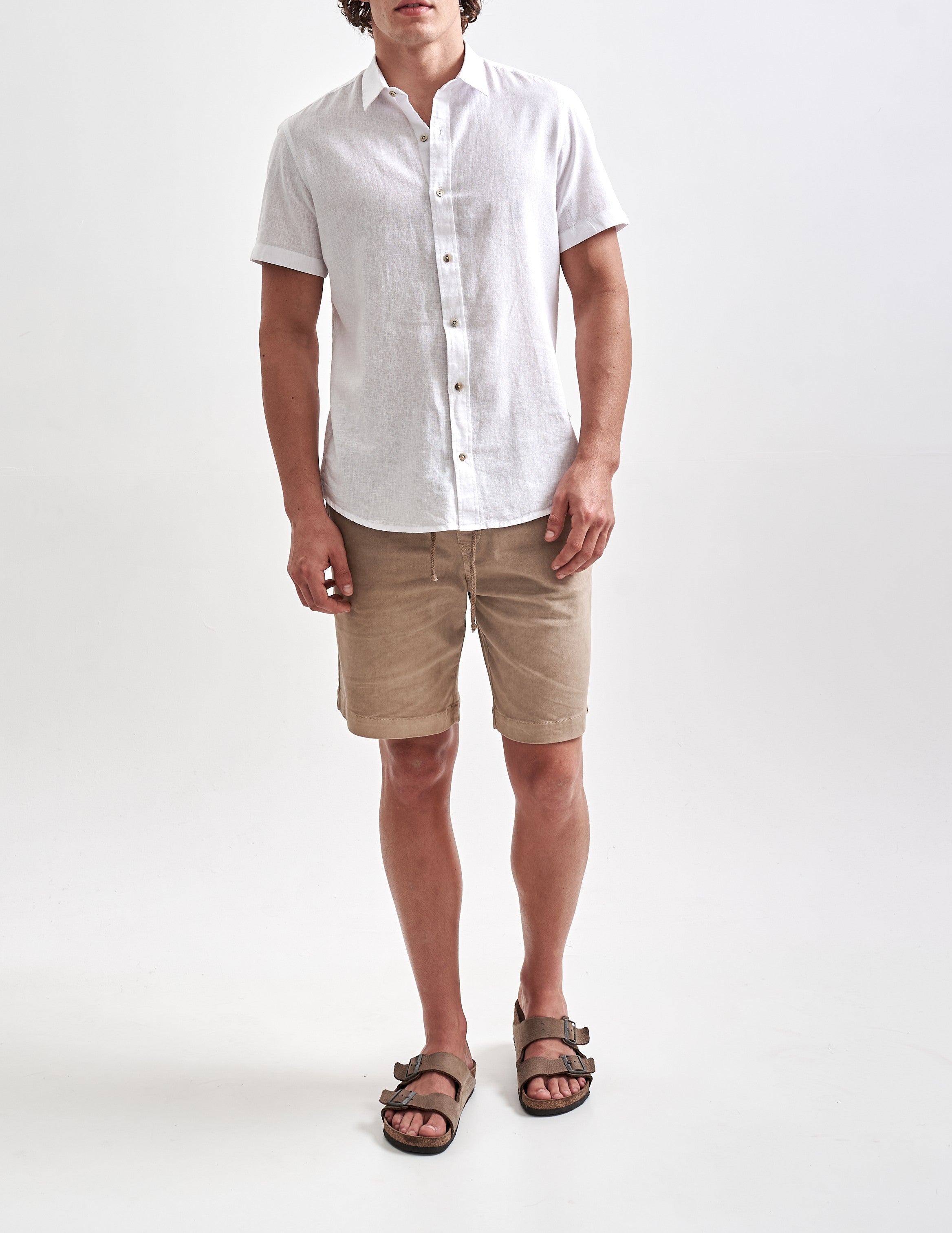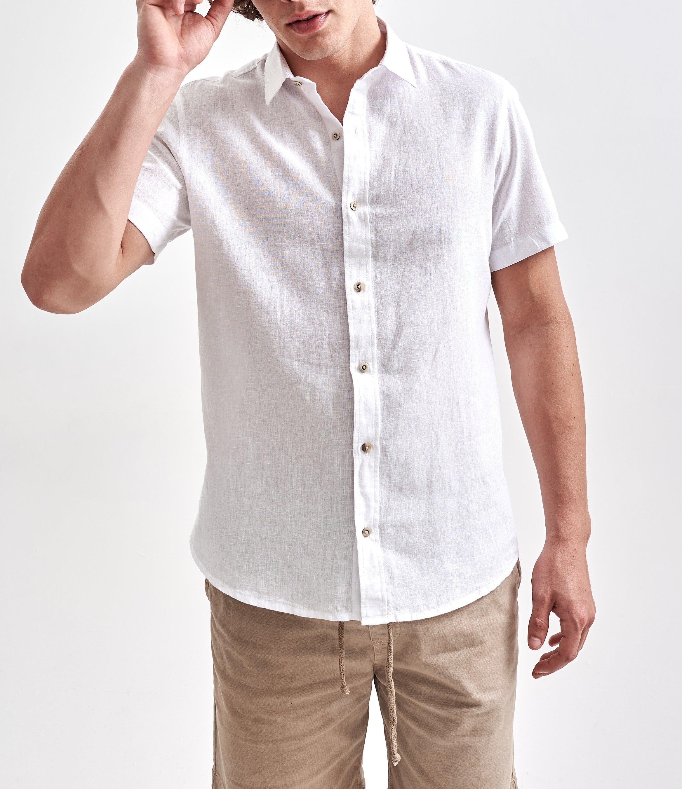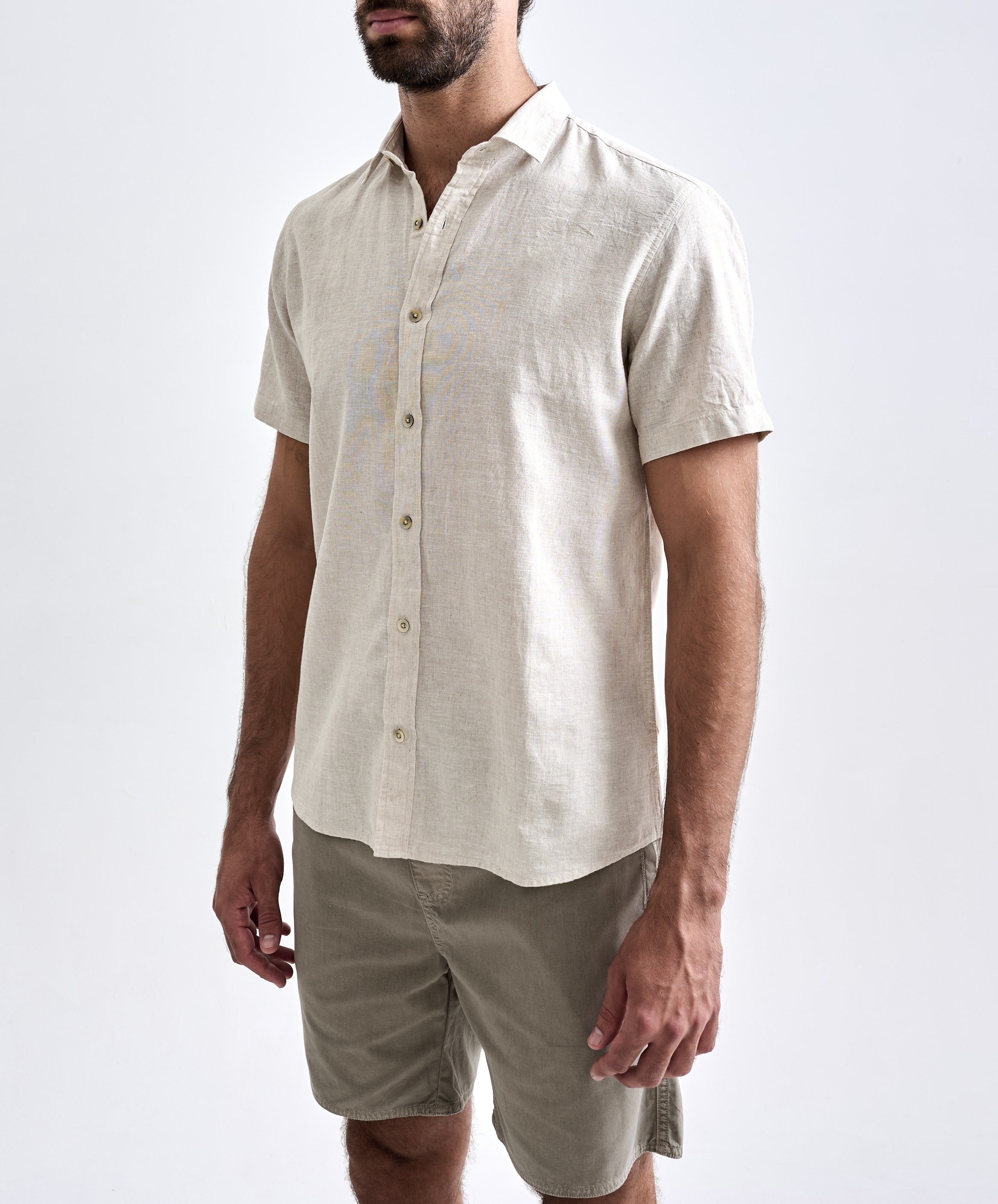 A Camisa de Linho Belize Manga Curta foi desenvolvida para dias mais frescos, com design de manga curta, modelagem regular e sem bolsos. O linho proporciona à peça um alto grau de respirabilidade e durabilidade, graças às características naturais dessa fi