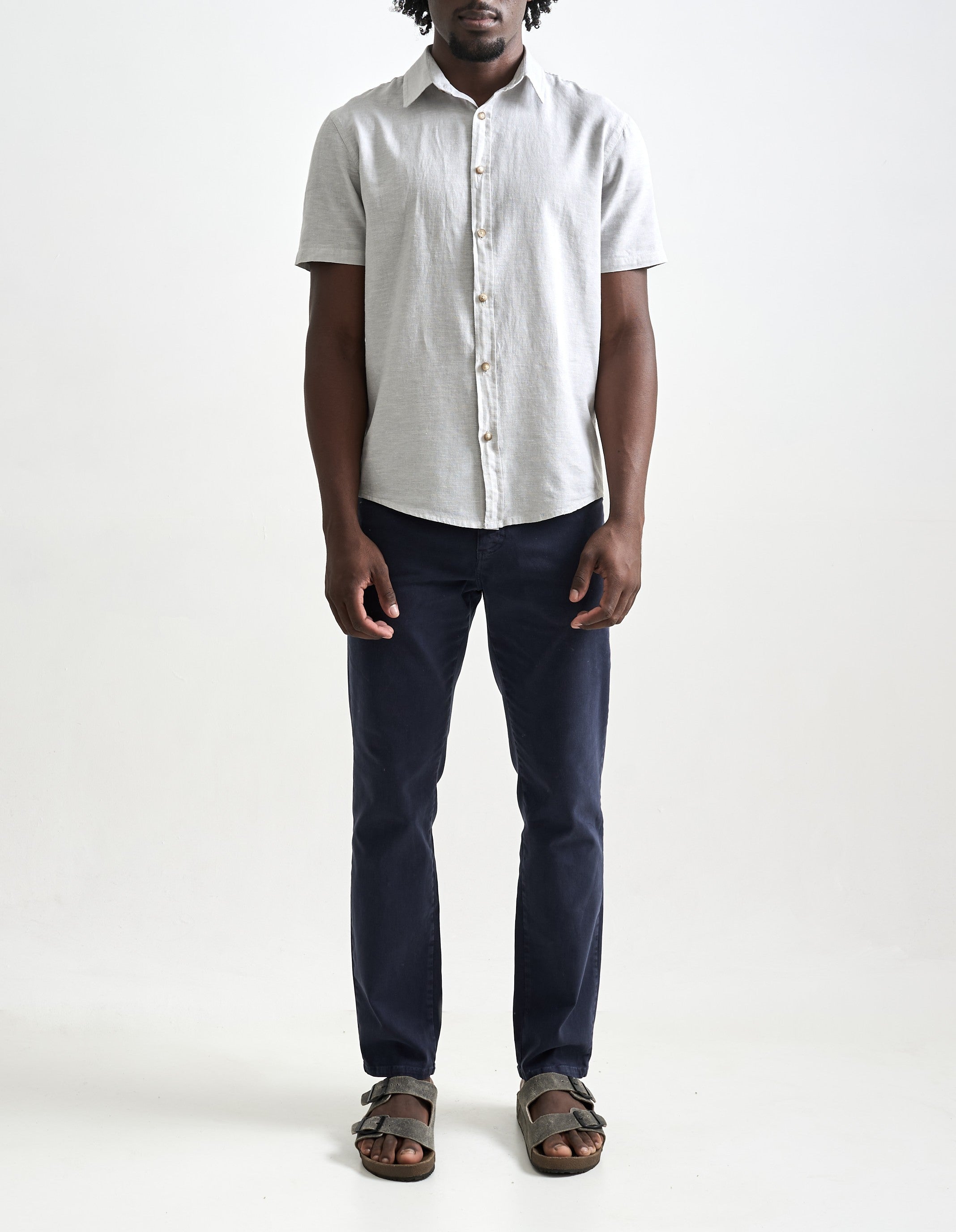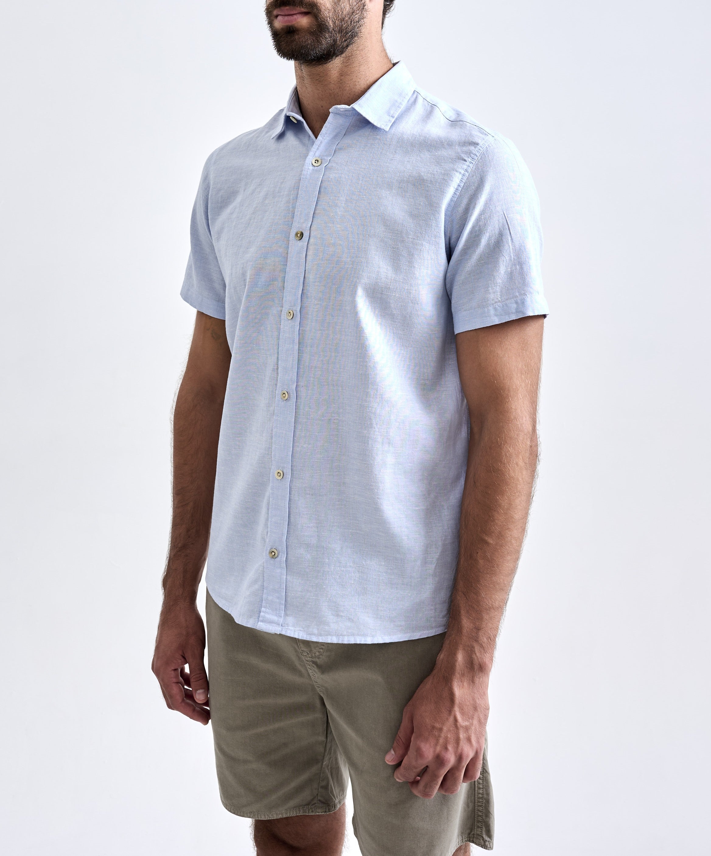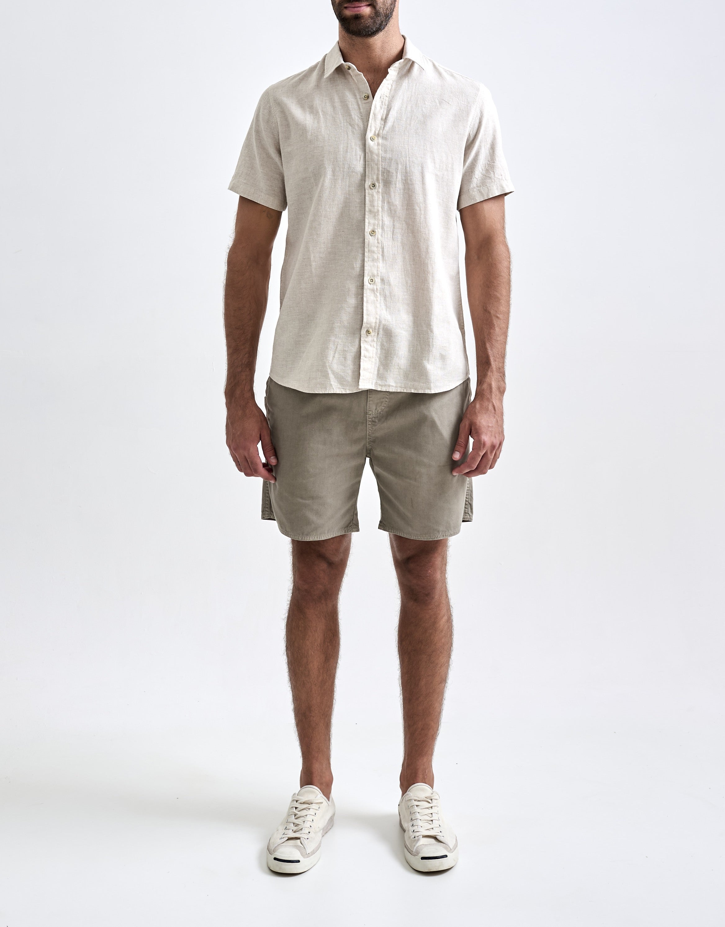 A Camisa de Linho Belize Manga Curta foi desenvolvida para dias mais frescos, com design de manga curta, modelagem regular e sem bolsos. O linho proporciona à peça um alto grau de respirabilidade e durabilidade, graças às características naturais dessa fi