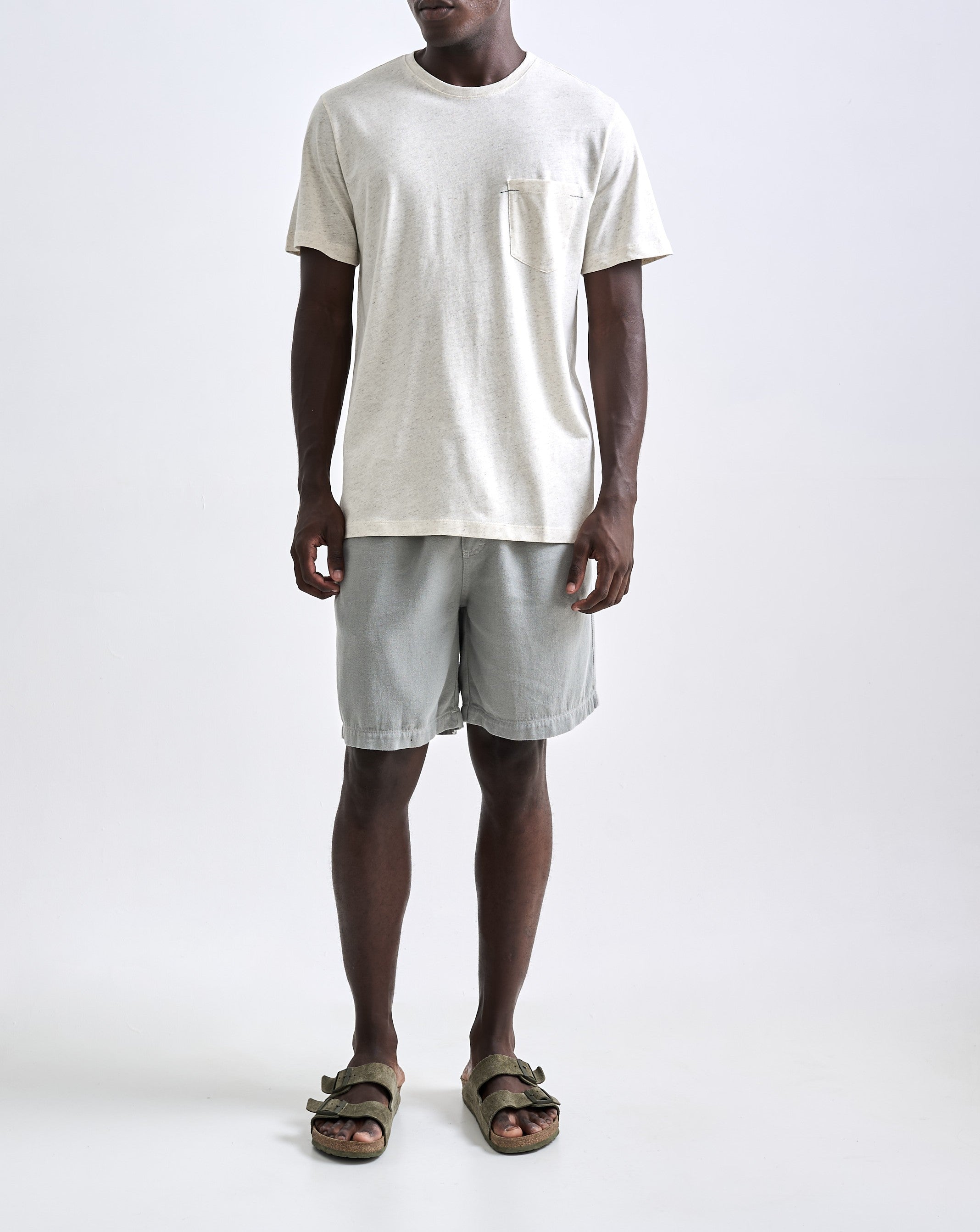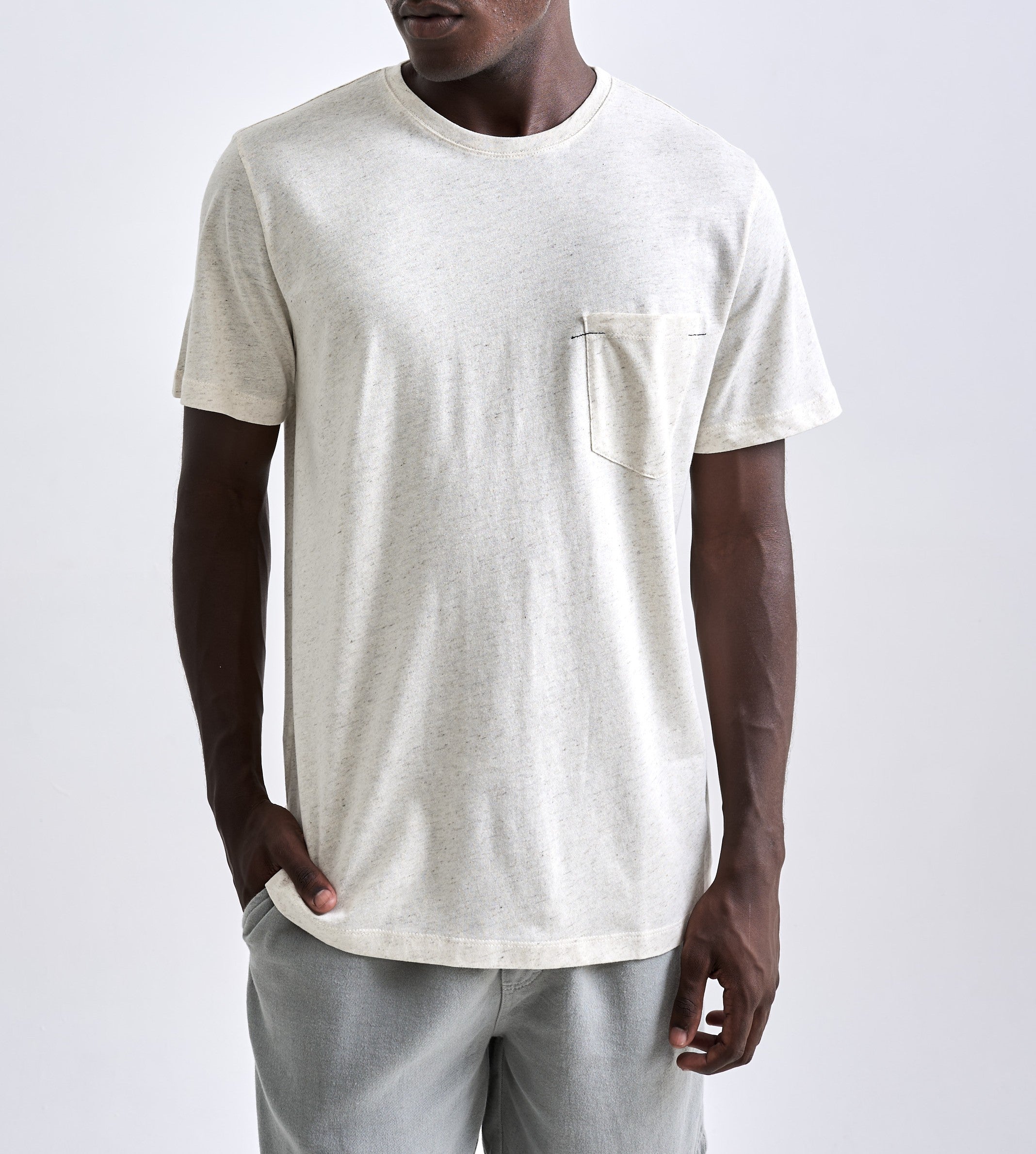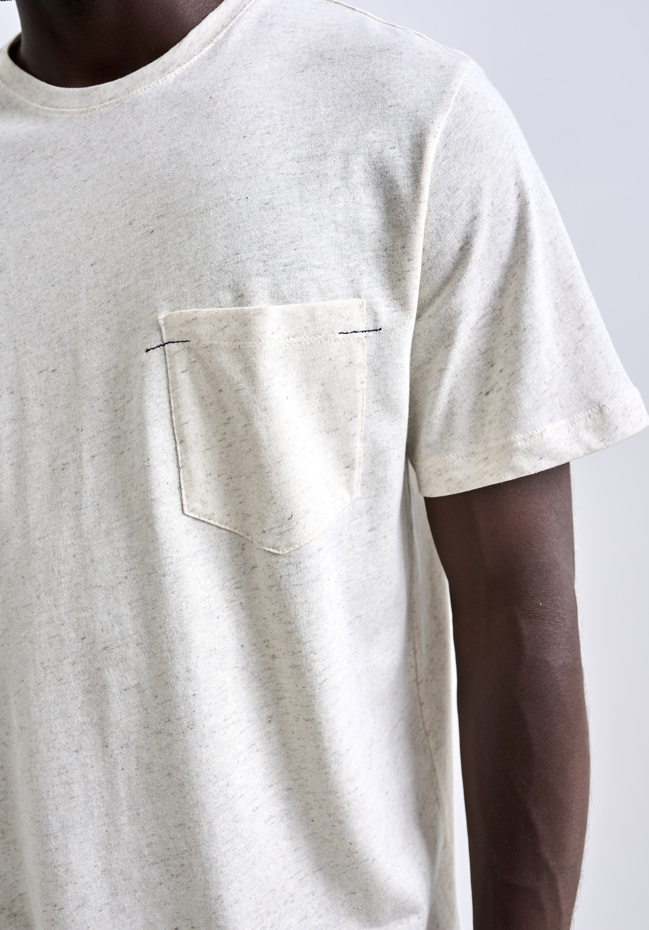 A Camiseta Linen Faro é confeccionada em uma malha com aspecto rústico e textura decorativa, resultado da junção de fibras naturais de algodão e linho. Essa combinação proporciona um visual único, com leveza, irregularidades naturais e partes finas e gros