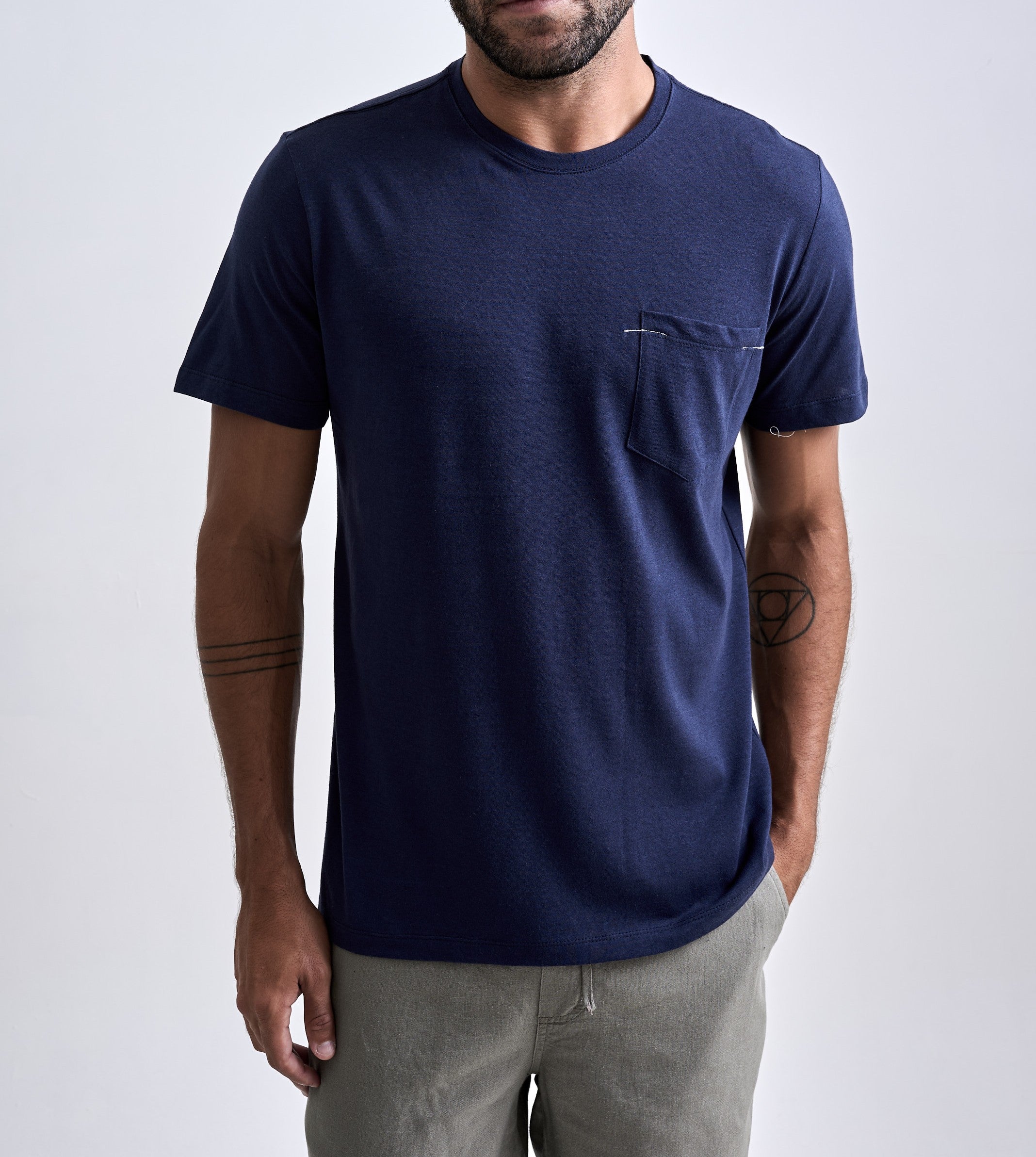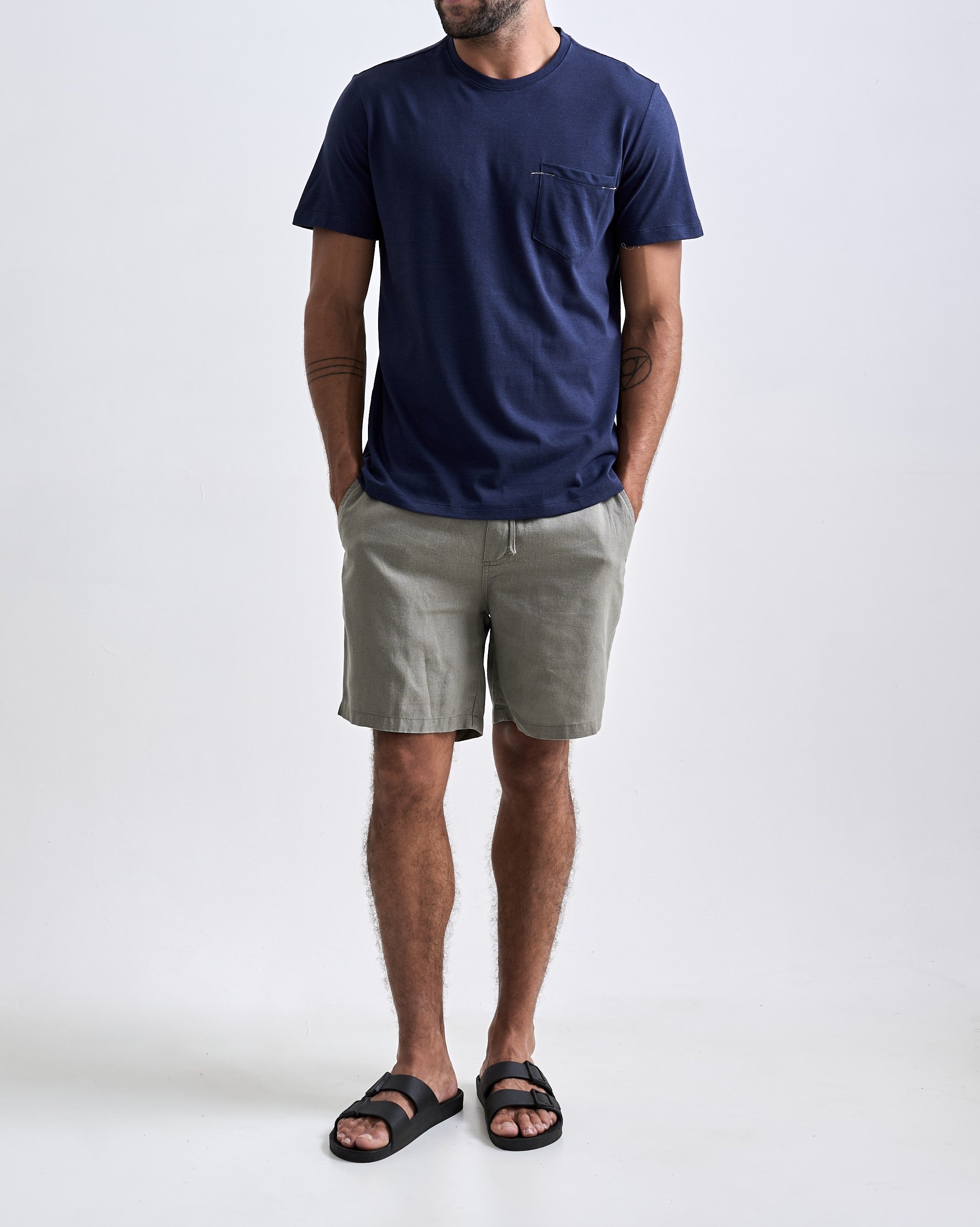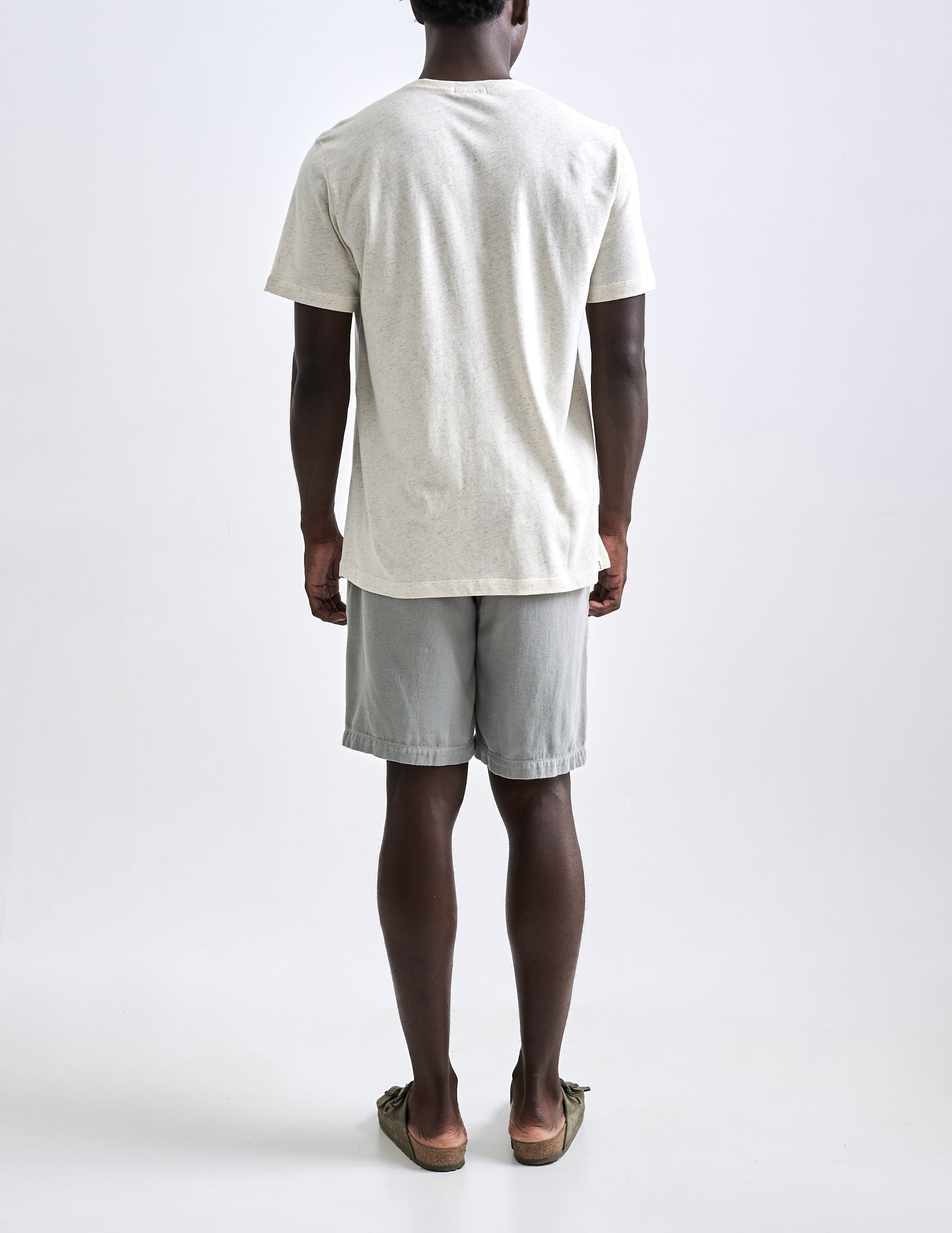 A Camiseta Linen Faro é confeccionada em uma malha com aspecto rústico e textura decorativa, resultado da junção de fibras naturais de algodão e linho. Essa combinação proporciona um visual único, com leveza, irregularidades naturais e partes finas e gros