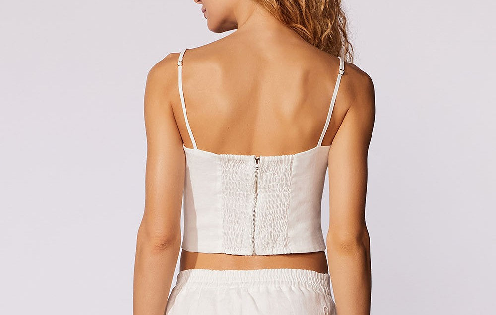Cropped Liso com alça trabalhada, lastex e zíper invisível nas costas