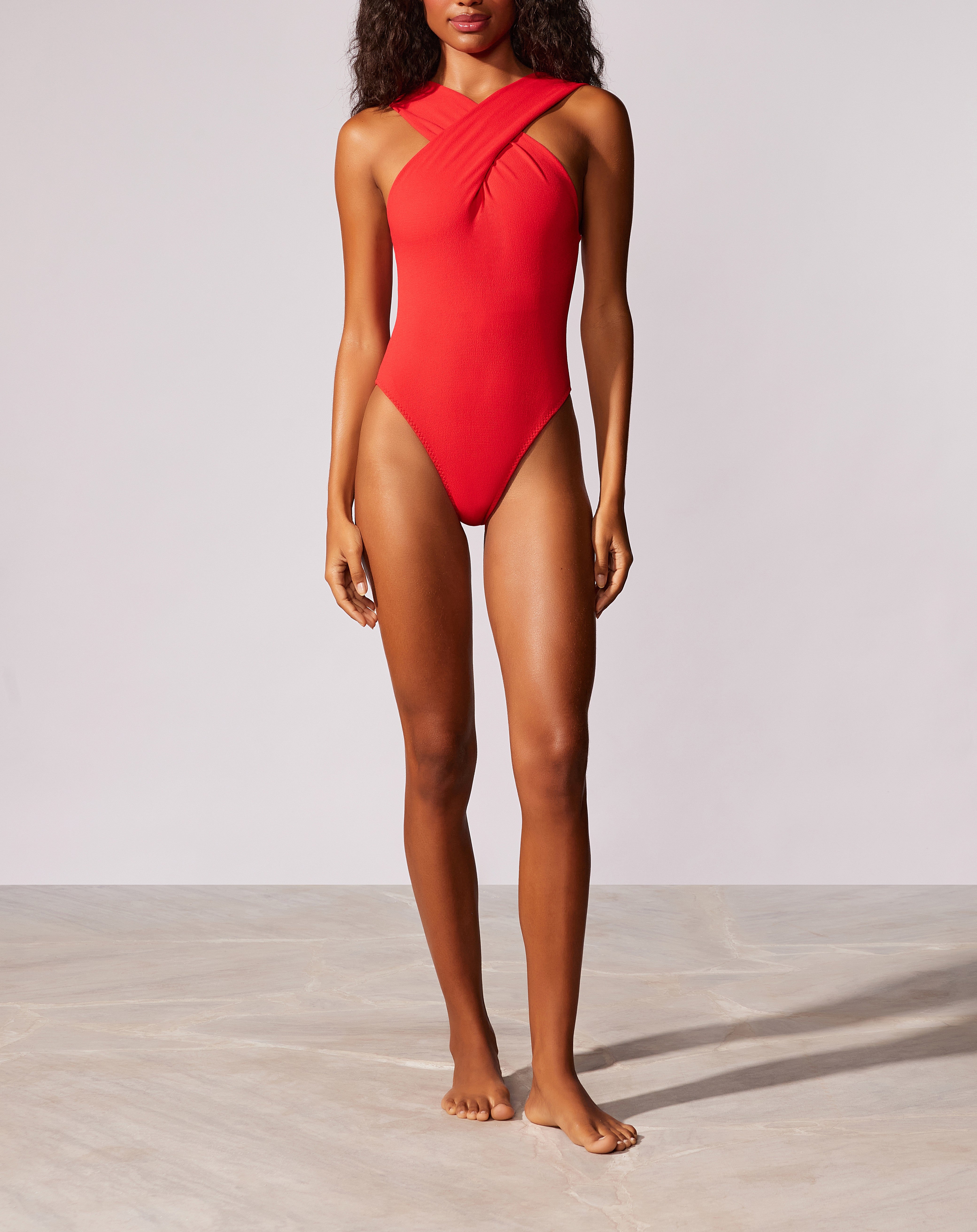 Maiô transpassado liso estilo frente única, com alças largas paralelas nas costas e bojo removível