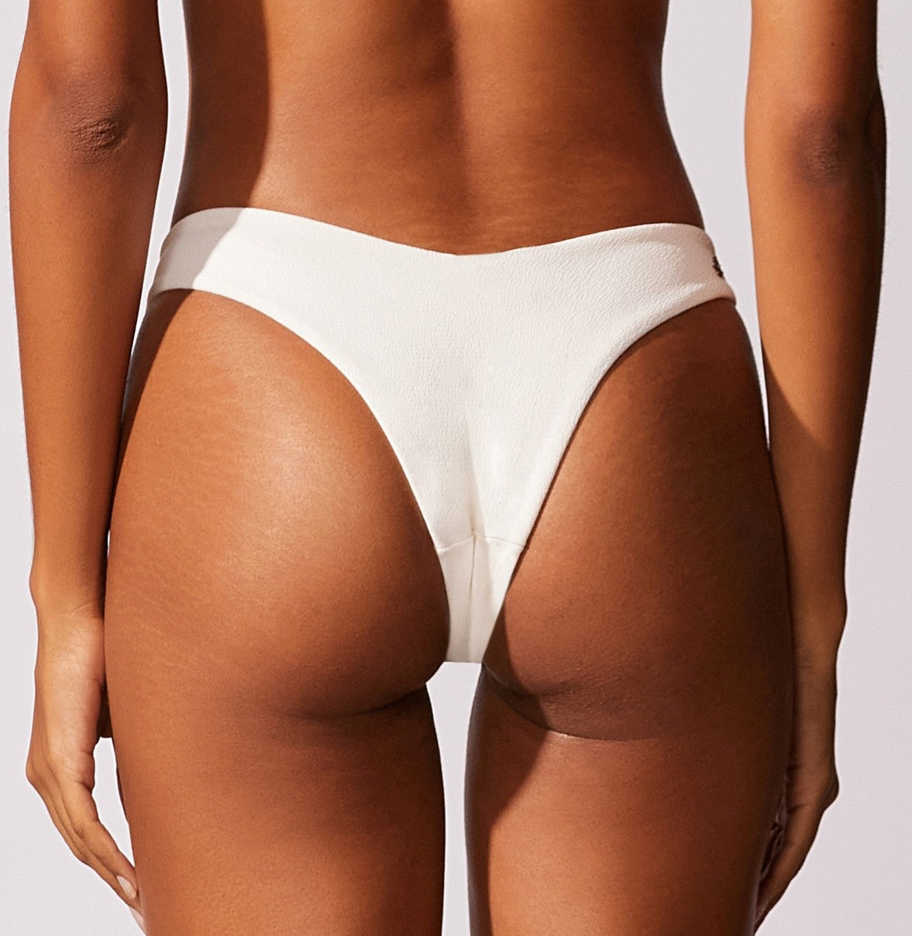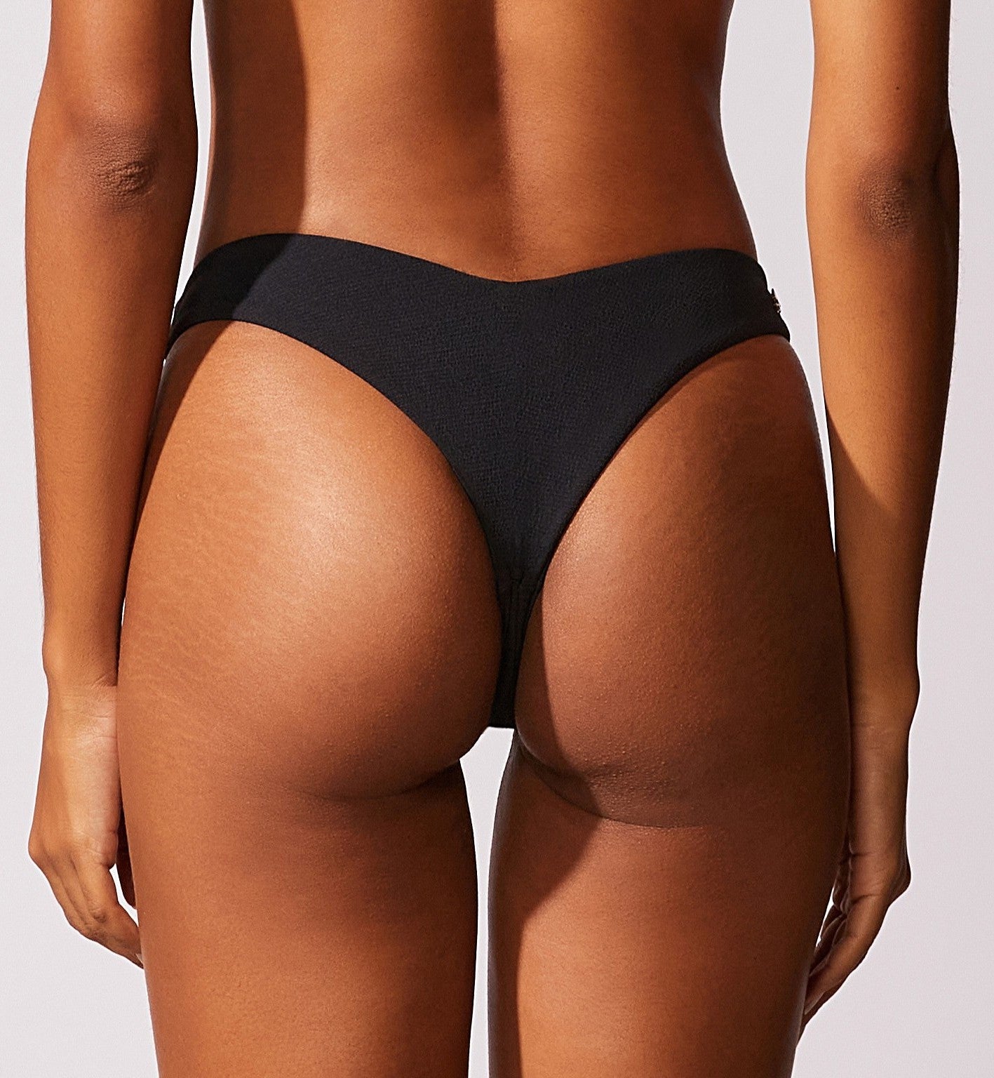 Tanga asa delta lisa cava alta e cobertura pequena. Detalhe de logo no banho ouro velho nas costas