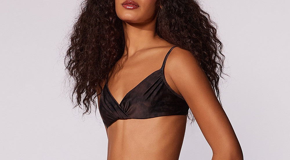 Top estampado, alças fixas, aro para maior sustenção e detalhe transpassado na frente com leve franzido. Peça possui amarração nas costas em preto com vrilho