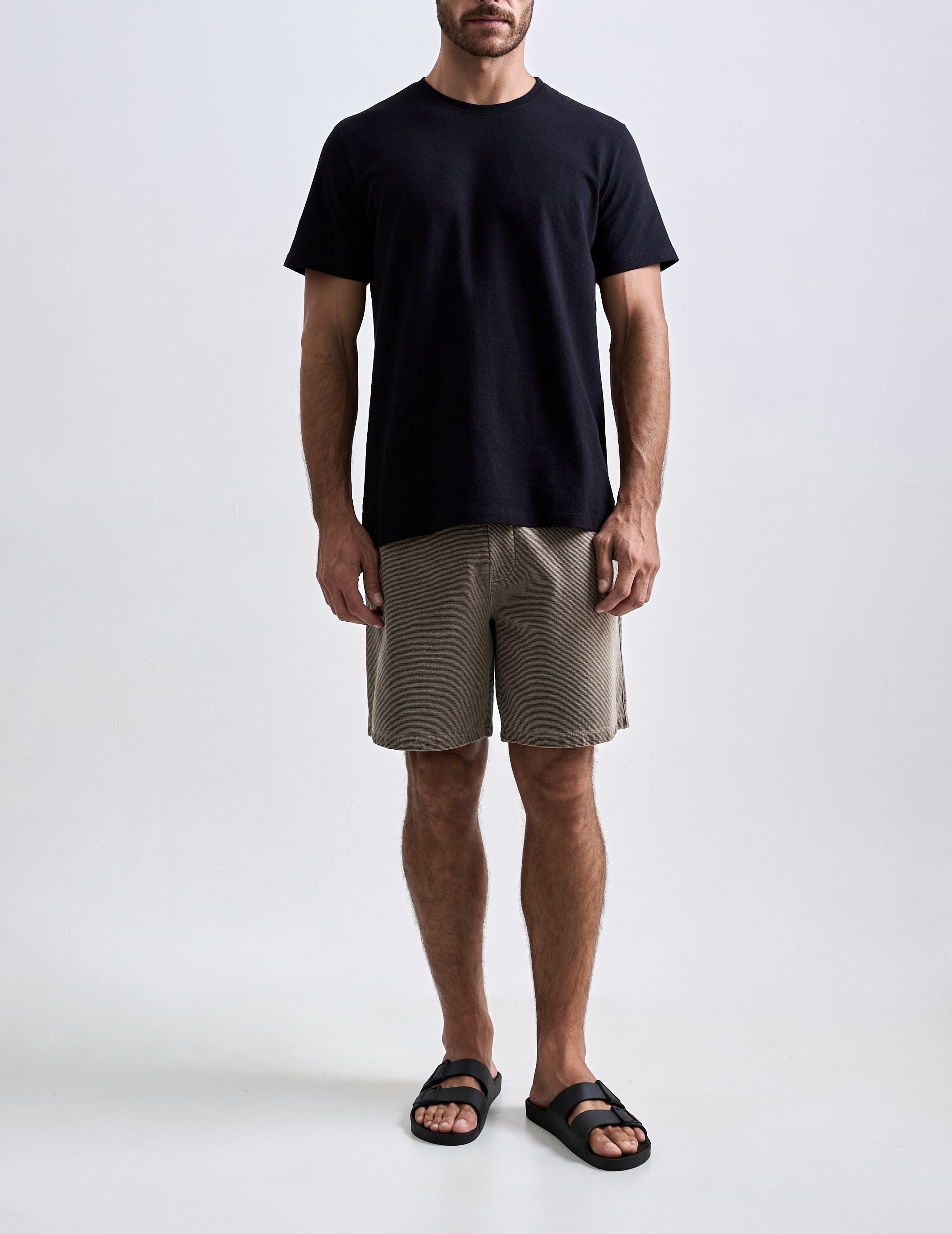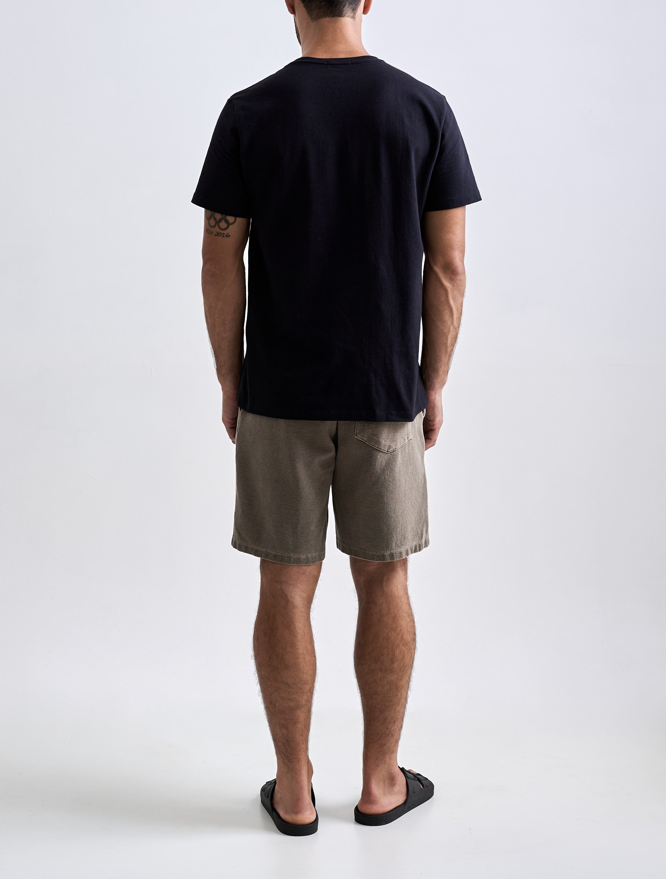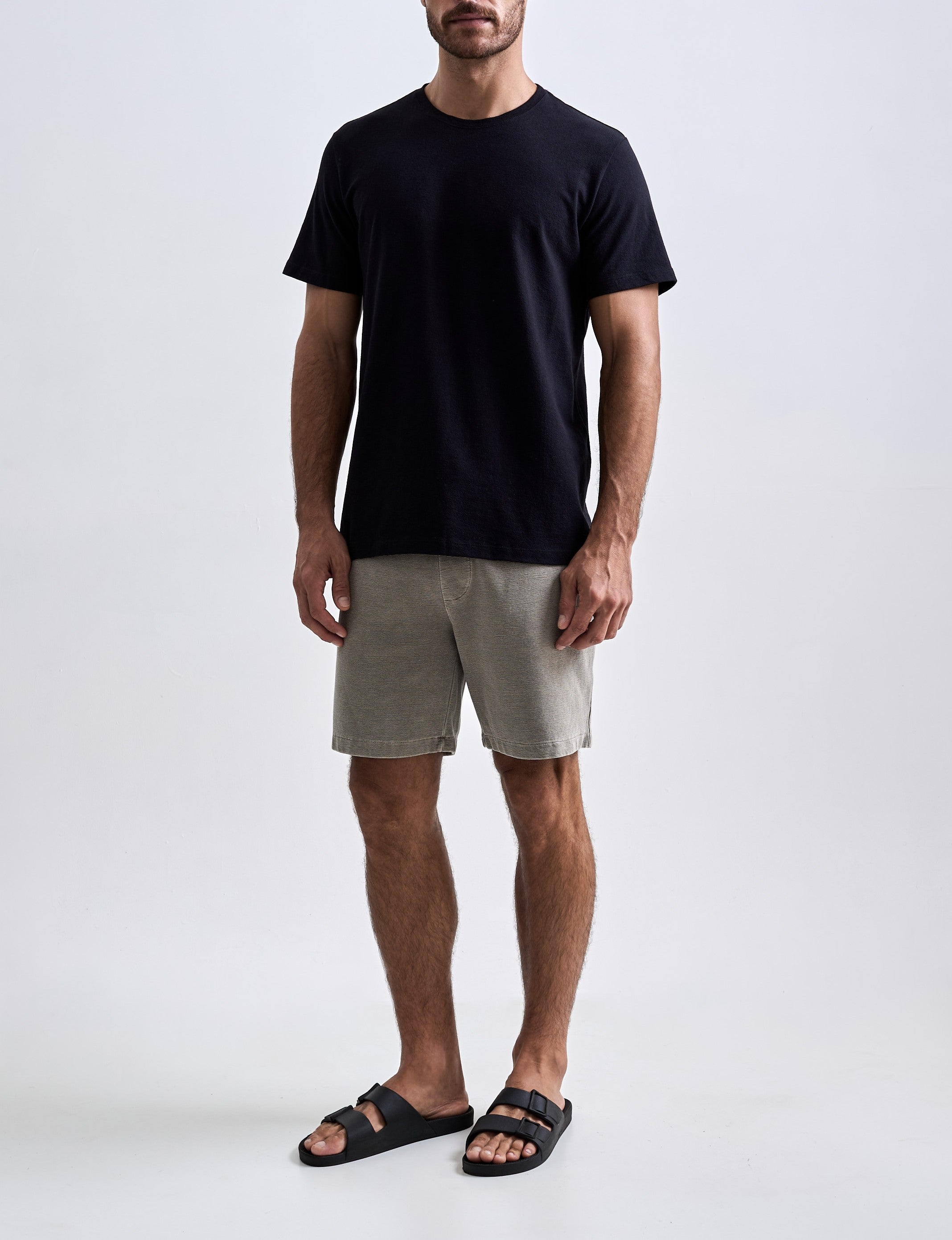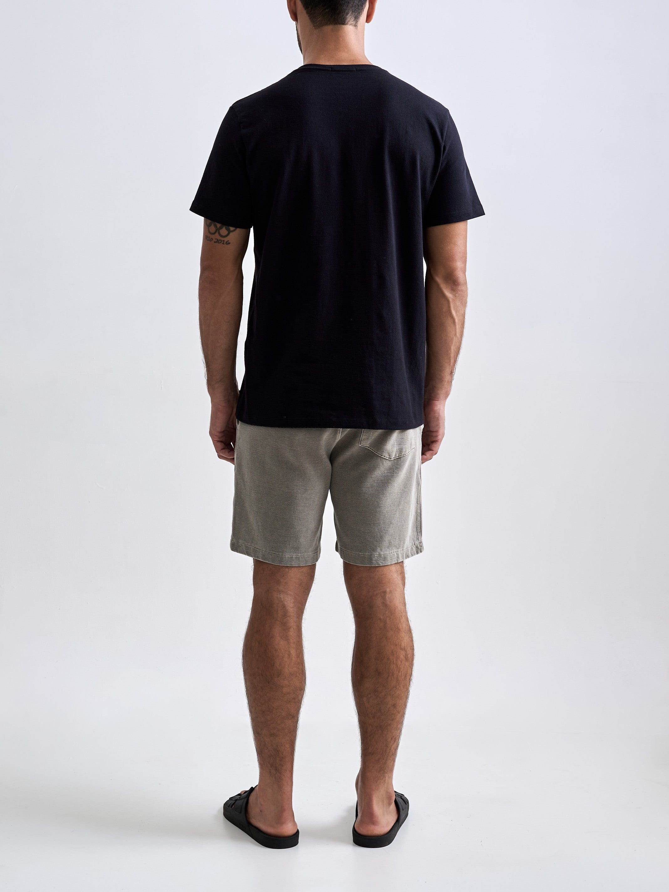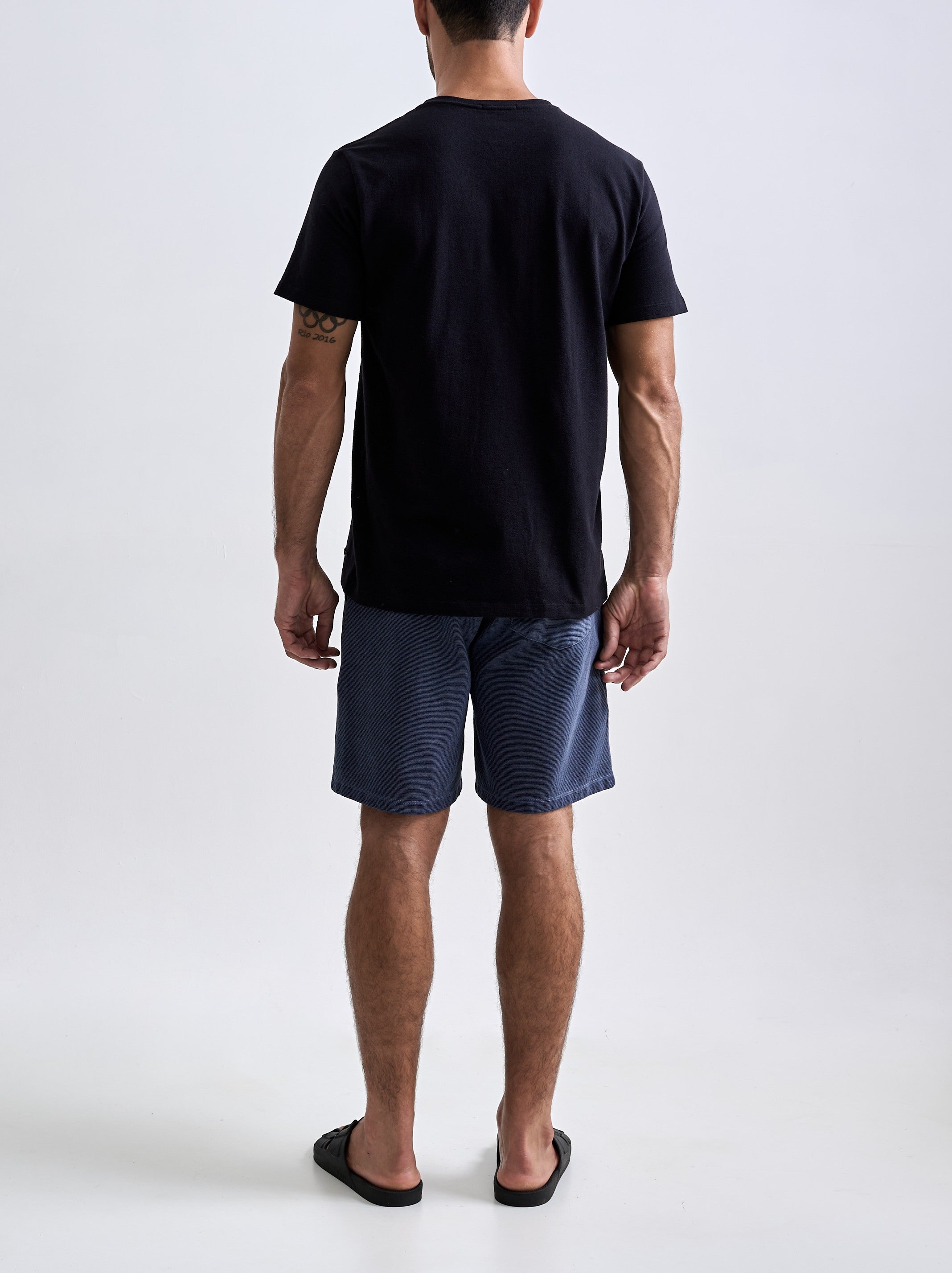 A Bermuda Neblina foi desenvolvida em tecido com textura de nervura, sem felpa interna e feita em 100% algodão penteado. O tingimento estonado reforça a textura do tecido. A peça tem modelagem regular e foi idealizada para proporcionar o máximo nível de c