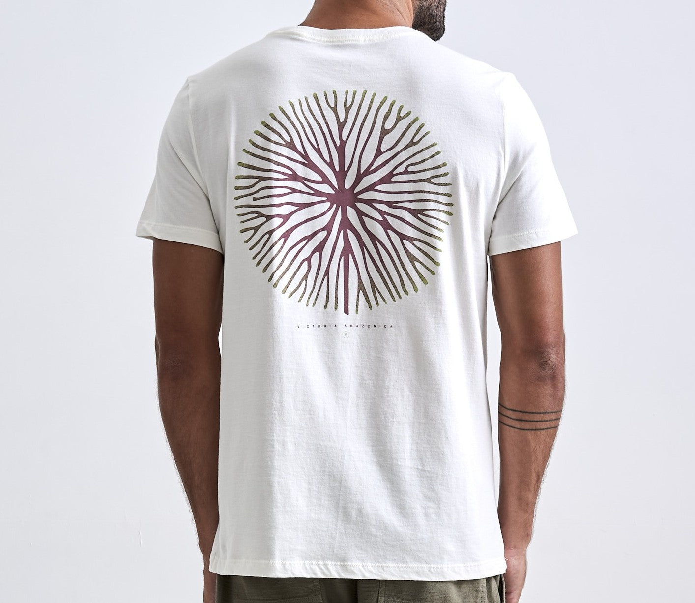 Camiseta em tecido 100% algodão penteado 30/01, pré-encolhida, pré-lavada e amaciada. A peça conta com reforços de costura na gola e nos ombros, para melhor estrutura e durabilidade. A estampa é feita com tinta a base d’água para minimização do impacto am