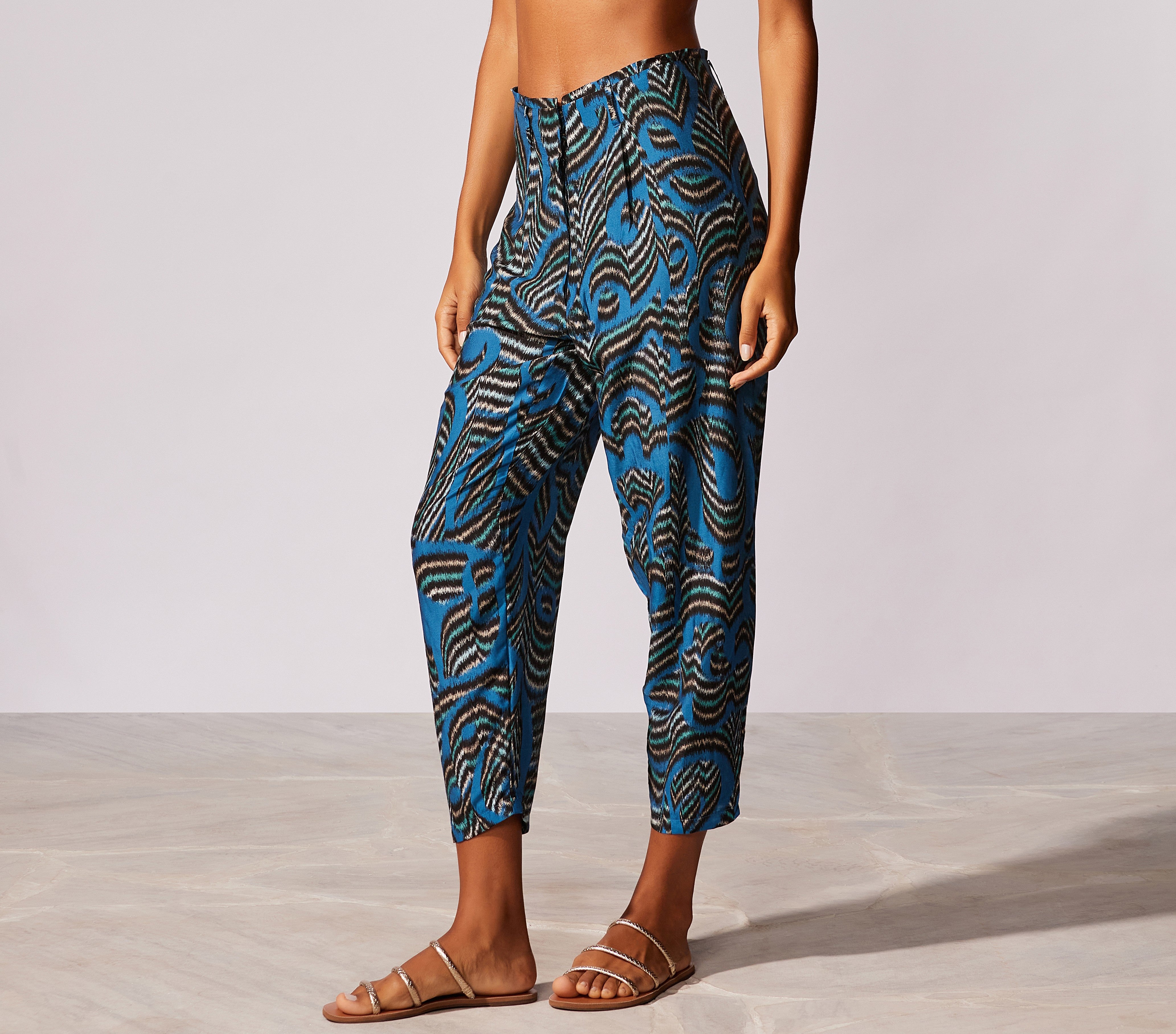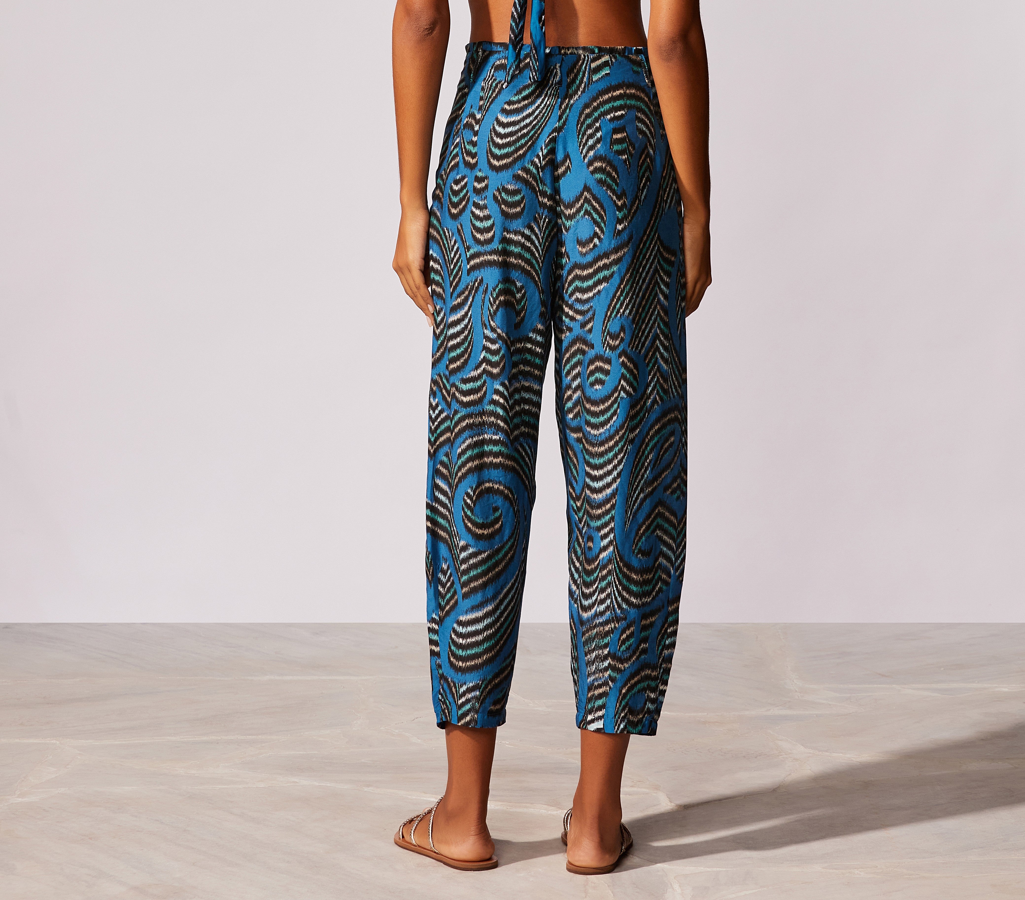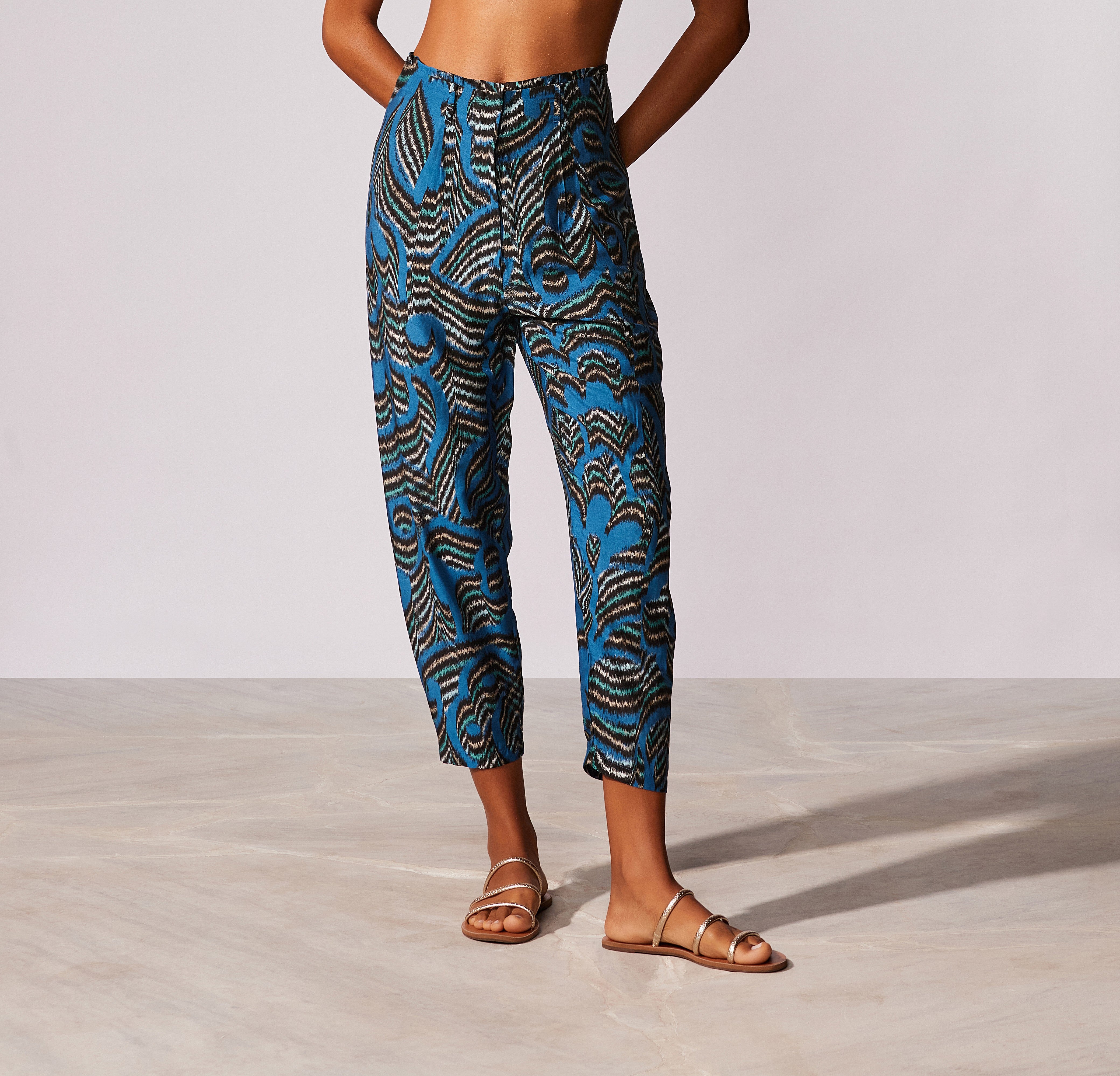 Calça estampada com prega