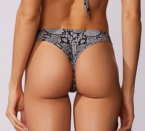 Tanga de fio duplo de cava alta e cobertura pquena, detalhe de metal em ouro fosco nas costas