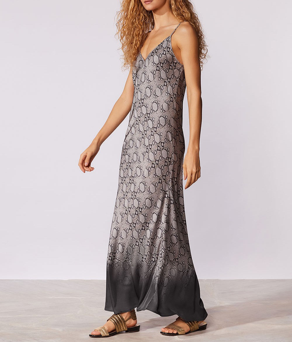 Vestido estampado com modelagem de slip dress e estampa localizada