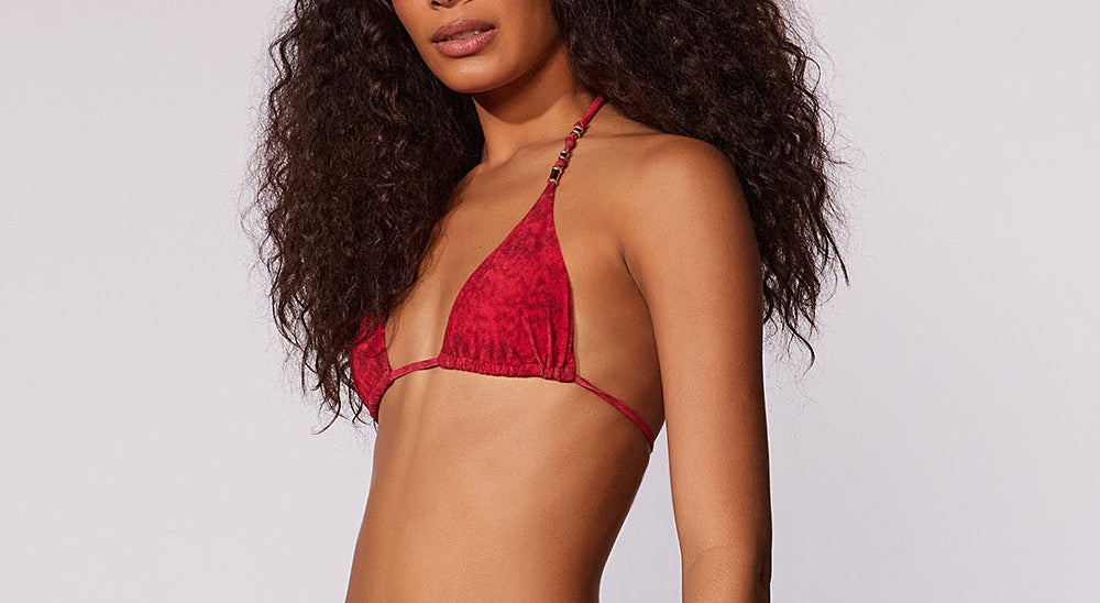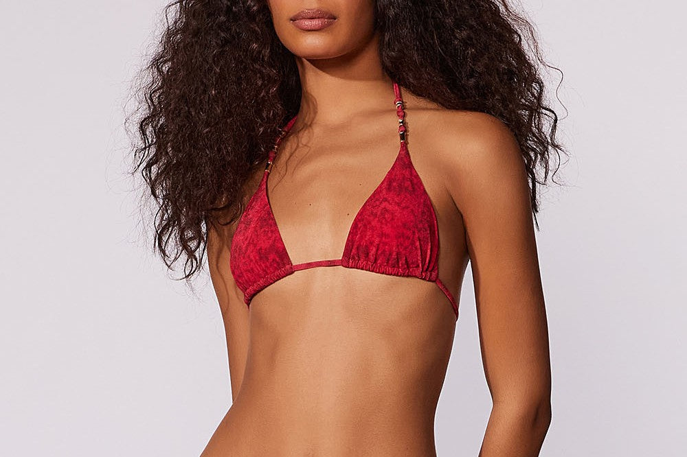 Top cortininha estampado, ajustável com alças finas com amarração no pescoço e nas costas. Peça possui detalhe de enfeites em ouro light. Bojo removível