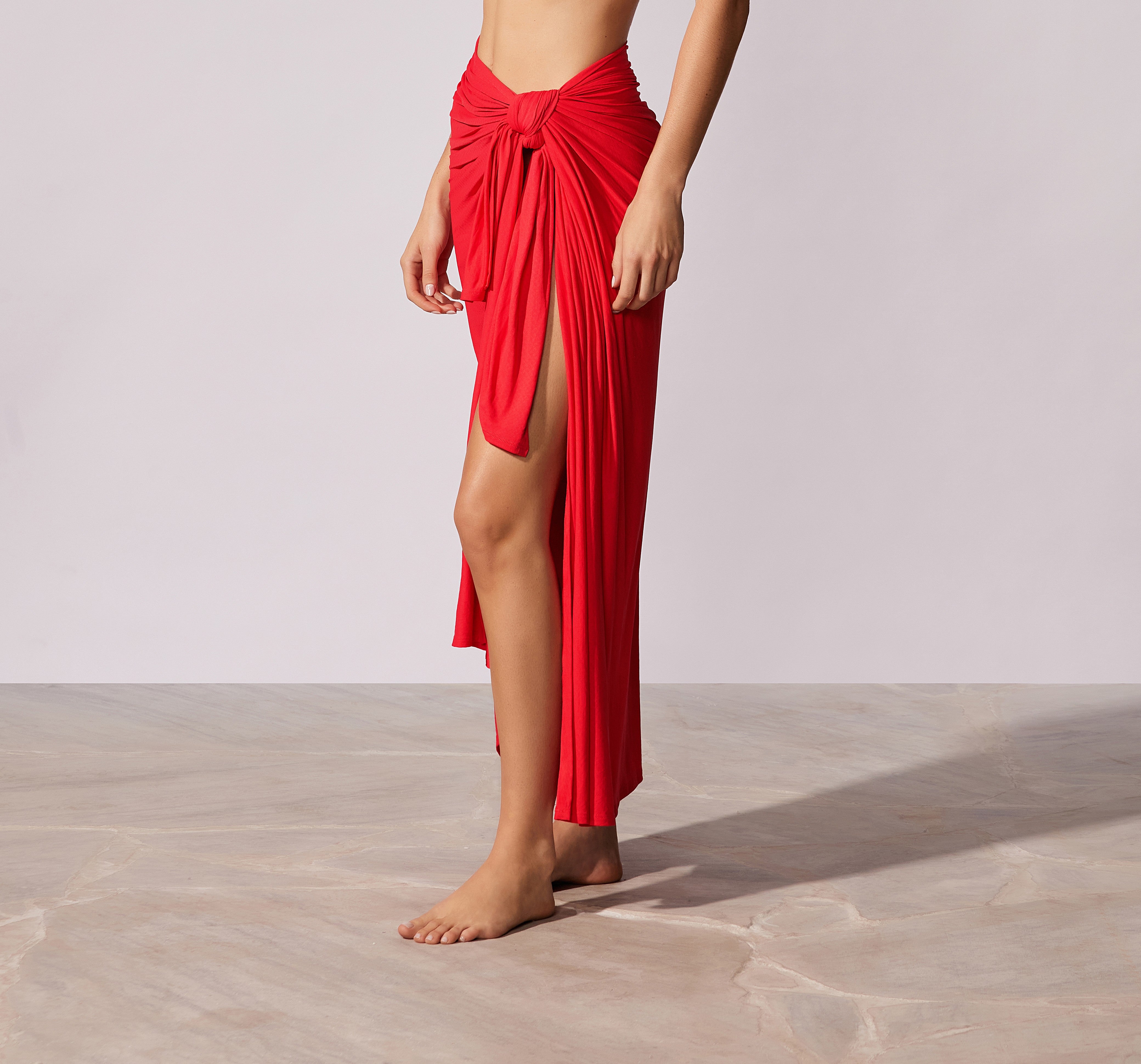 Canga lisa pode ser usada de diversas maneiras no corpo ou somente na cintura.