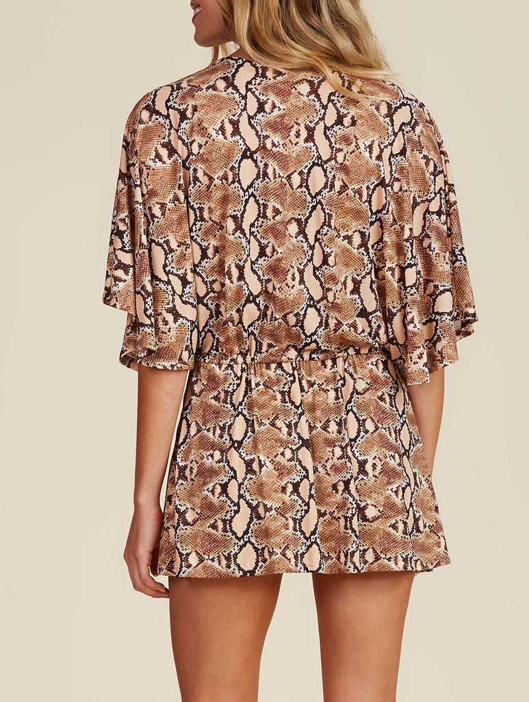 Short plain kaftan from Cia Maritima, tying at the waist with detail at the hem.