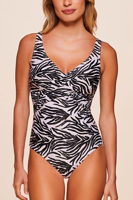 Bañador cruzado estampado de tirantes anchos y escote profundo en la espalda, con cierre extraíble.