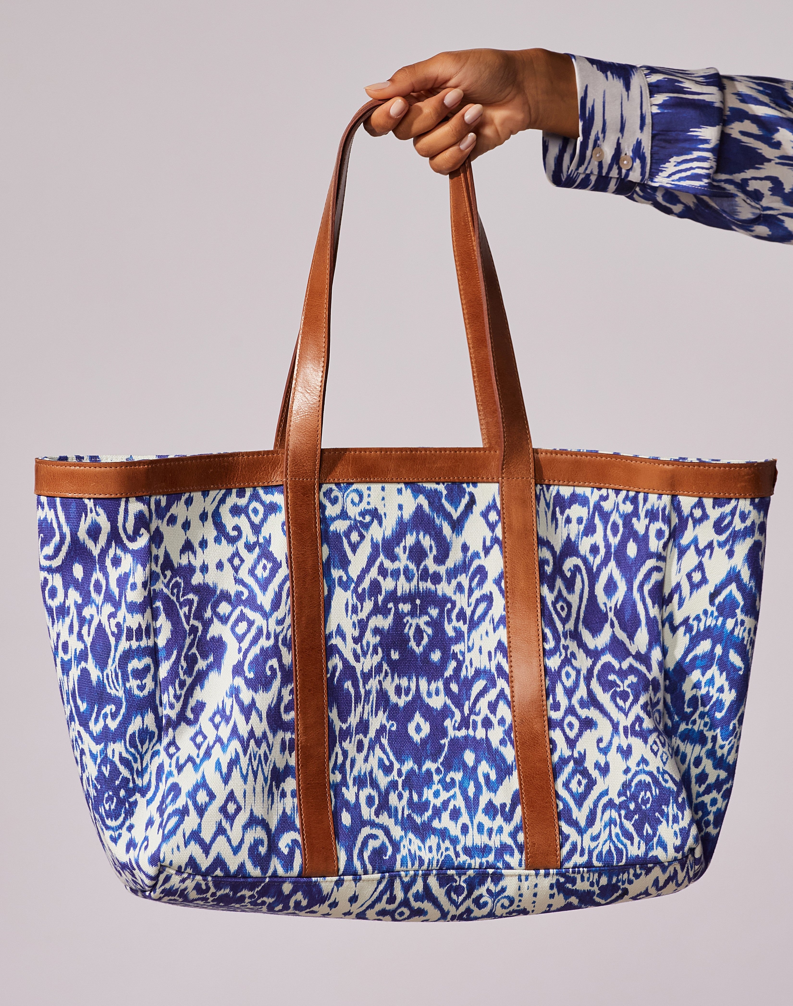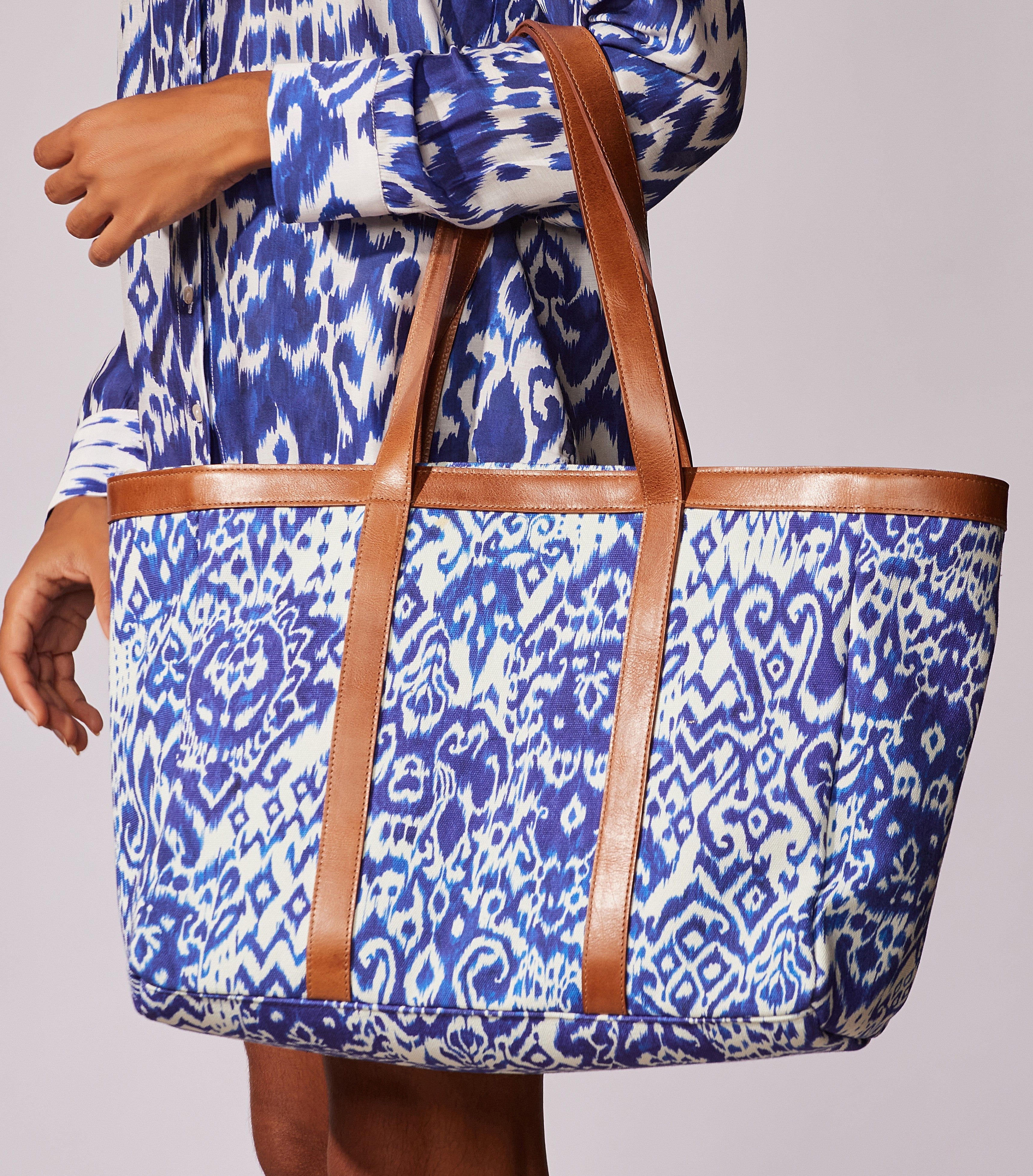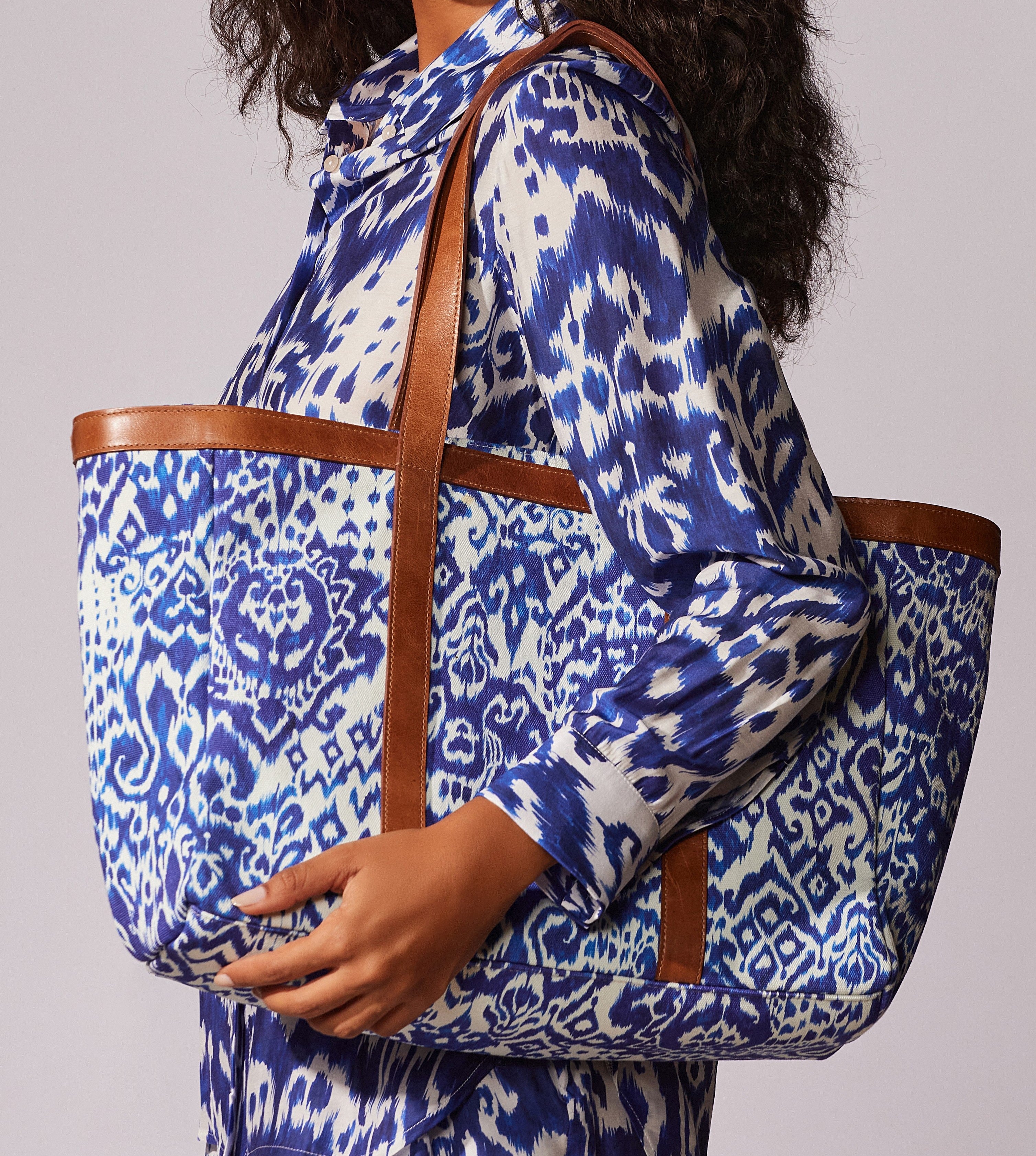 Bolsa estampada com detalhes em couro