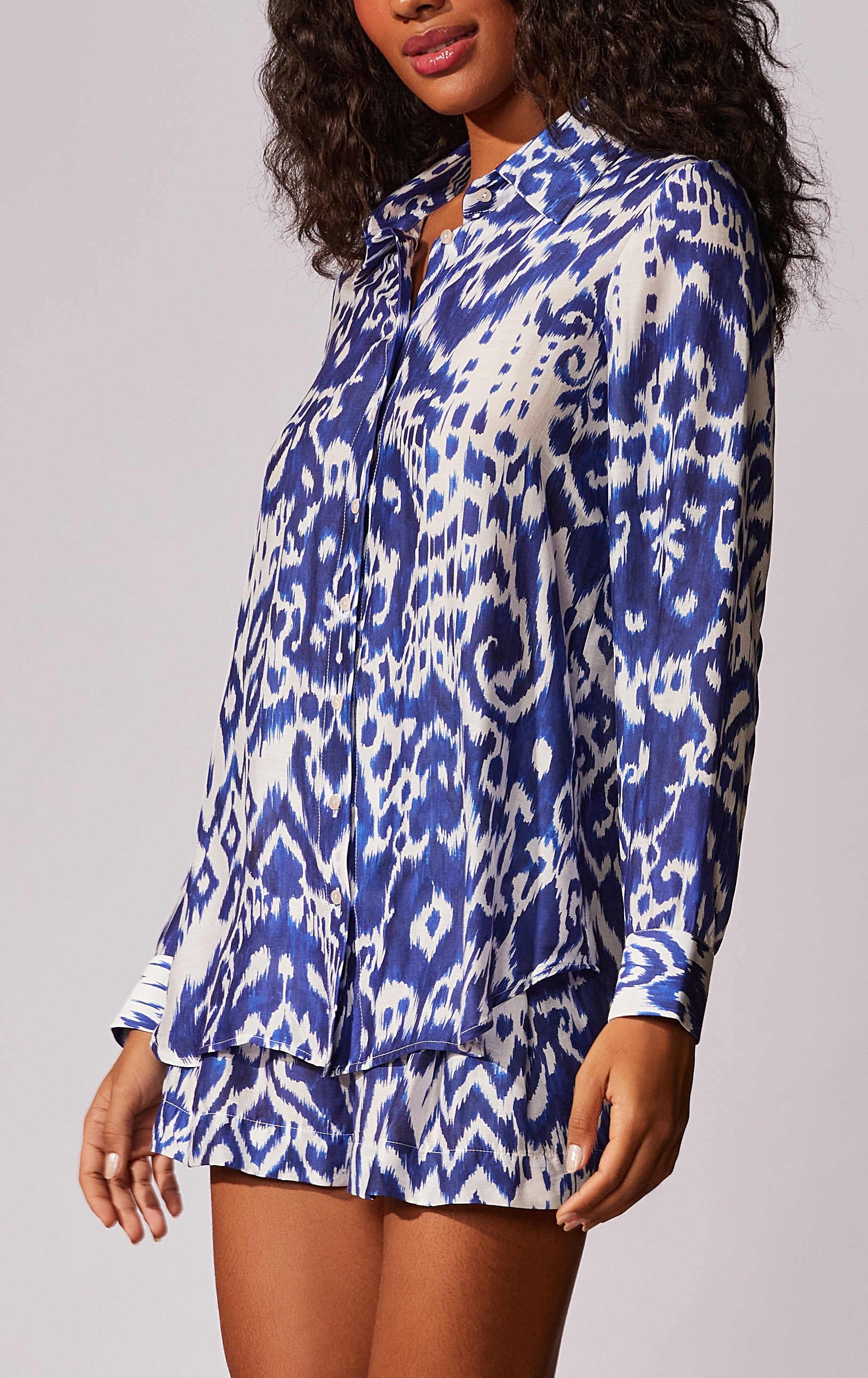 Camisa estampada manga longa com fechamento de botões frontal