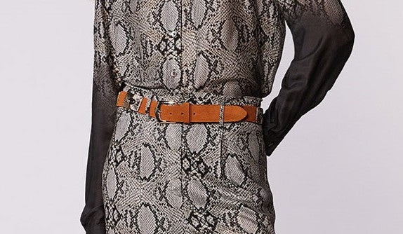 Cinto de couro com aplicação de metais